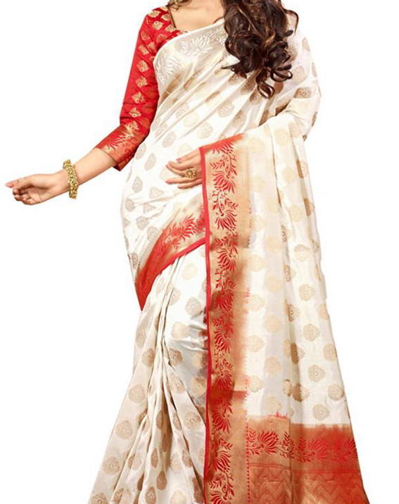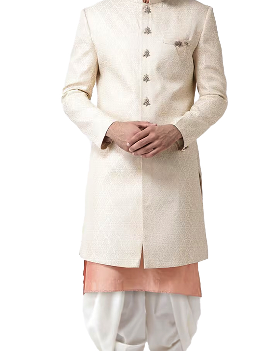Ready to Wear Dhoti and Angavastram Set with Woven Golden Leaves Border