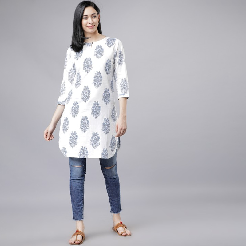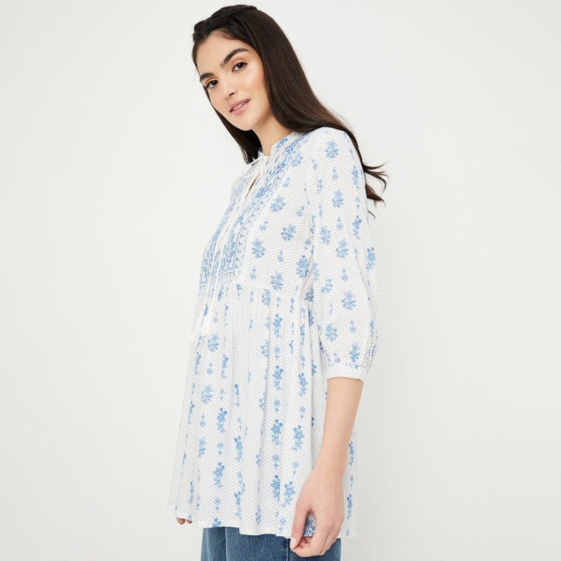 White & Blue Printed Tunic