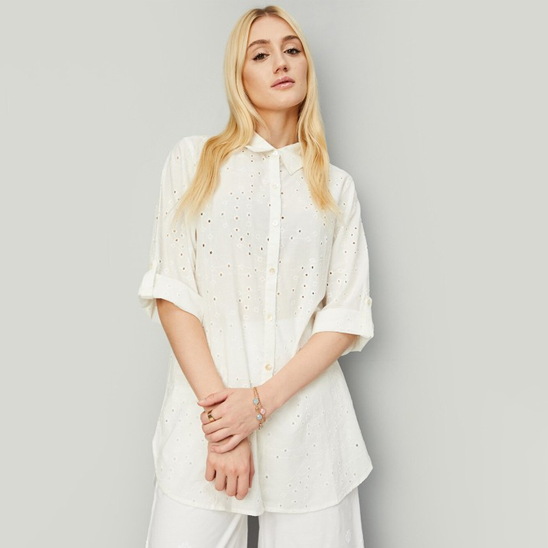 Schiffli Shirt Collar Schiffli Pure Cotton Tunics