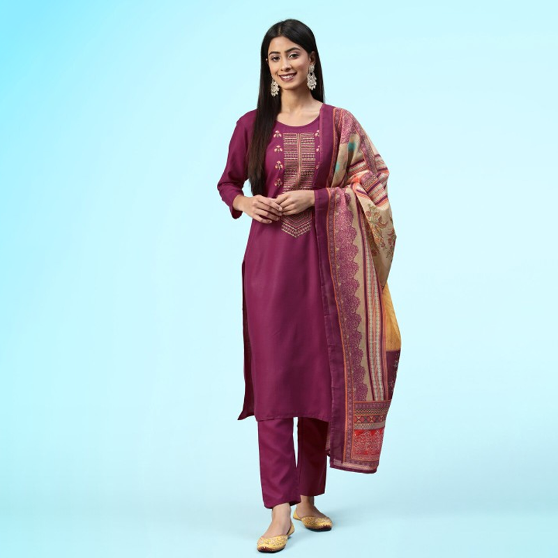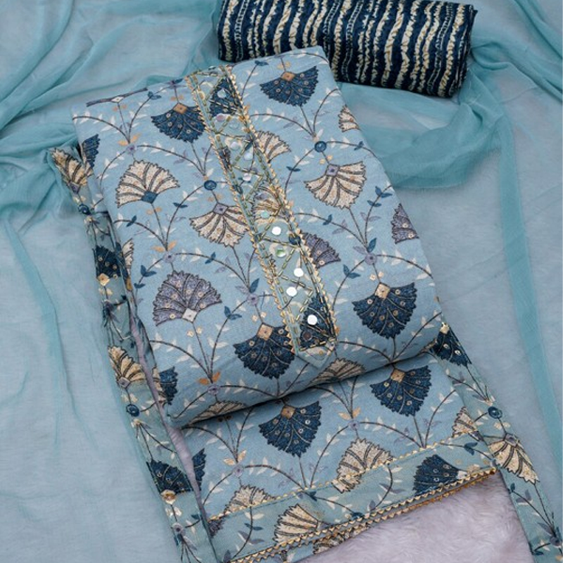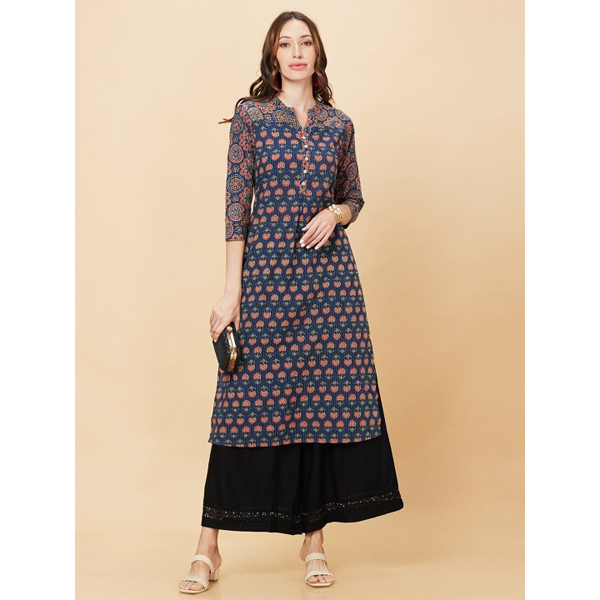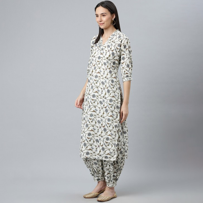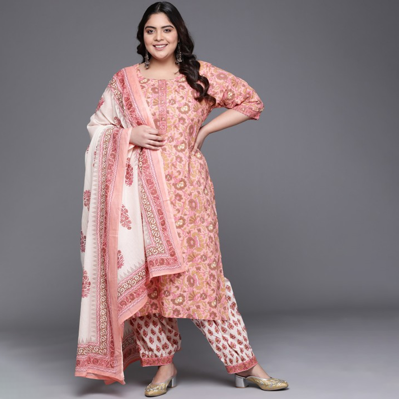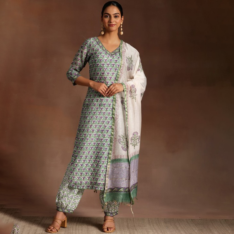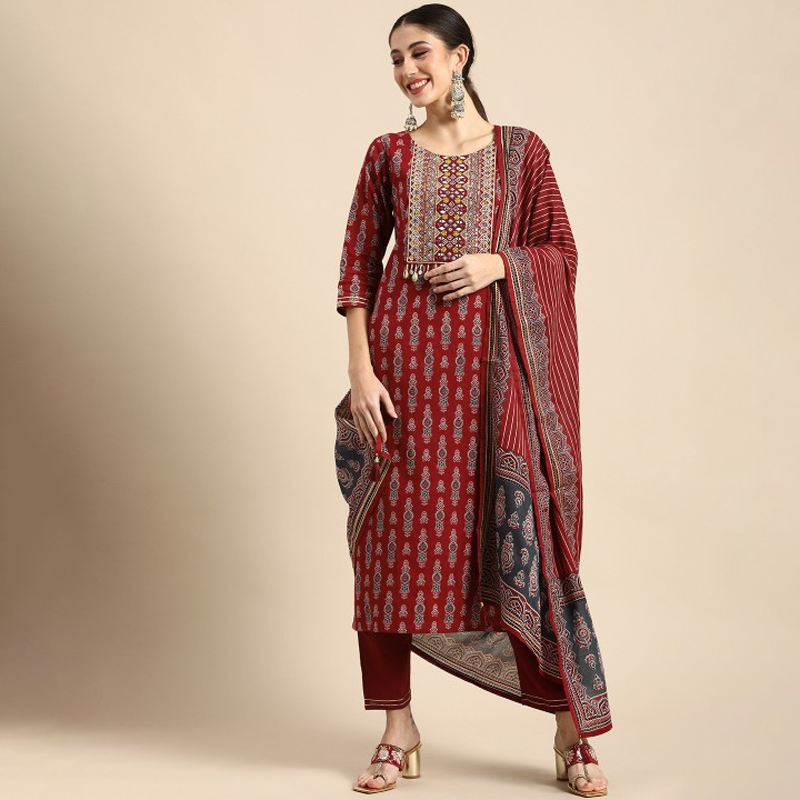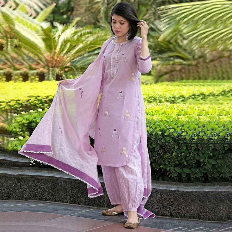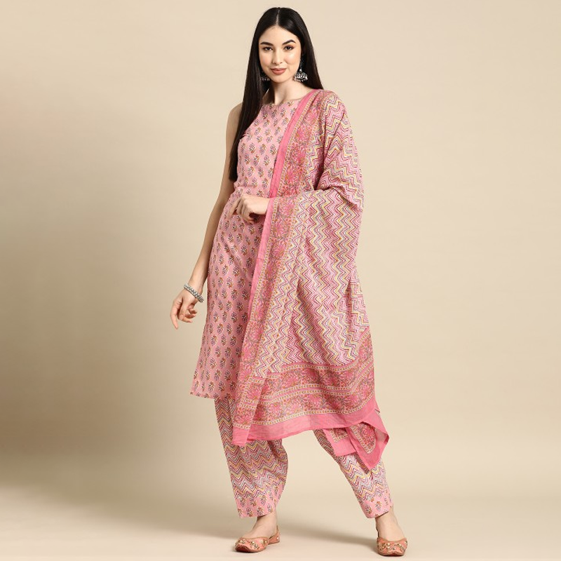 Geometric Printed Pure Cotton Straight Kurta With Salwar And Dupatta