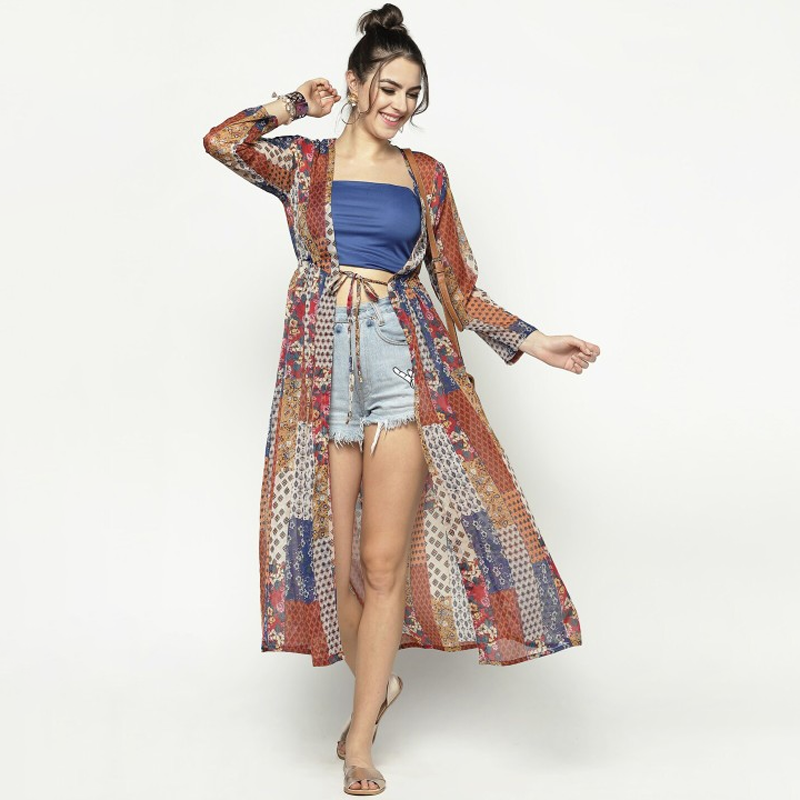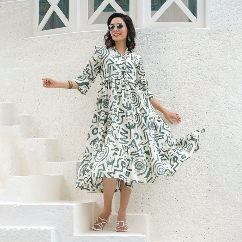 Ethnic Motifs Print Bell Sleeve Maxi Dress