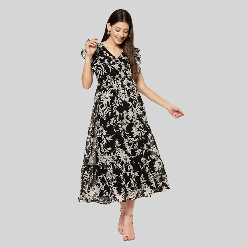Brown & Black Ethnic Motifs Print Maxi Dress