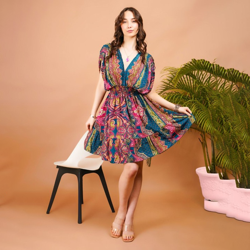 Printed Ready to Wear Halter Neck Smocked Lehenga & Blouse With Dupatta