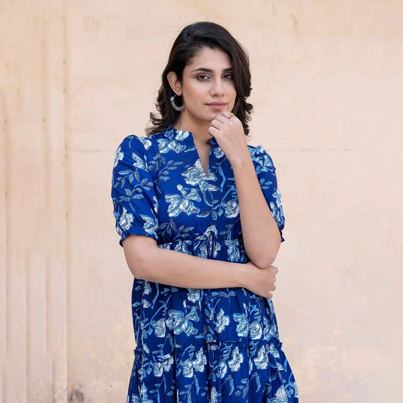 Brown saree Geometric printed saree with no border The saree comes with an unstitched blouse piece The blouse worn by the model might be for modelling purpose only. Check the image of the blouse piece to understand how the actual blouse piece looks like. Size & Fit : Length: 5.5 metres plus 0.8 metre blouse piece Width: 1.06 metres (approx.) Material & Care : Saree fabric:Pure cotton Blouse fabric:Pure cotton Hand wash