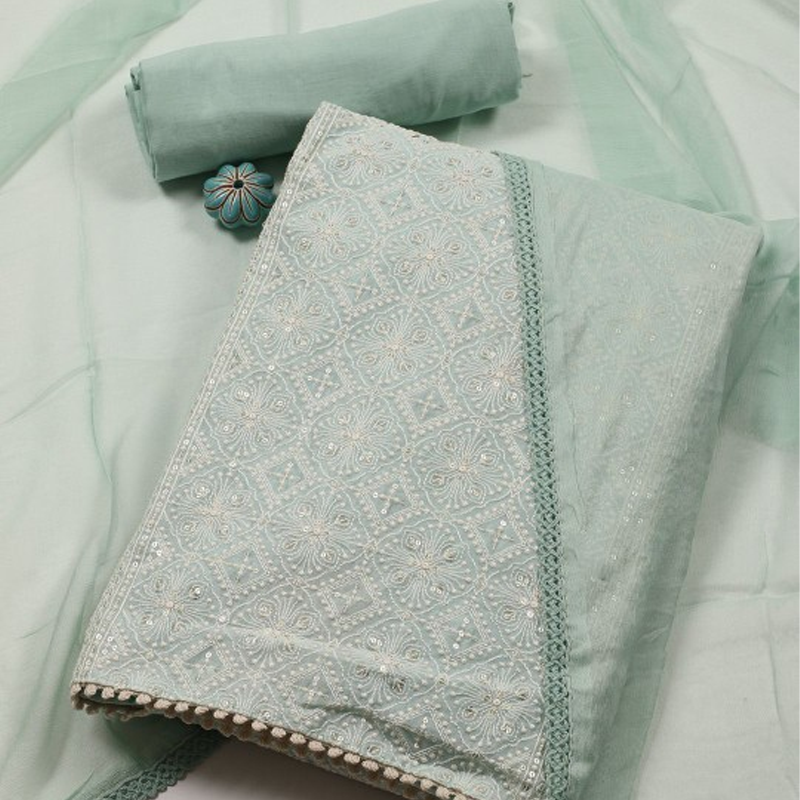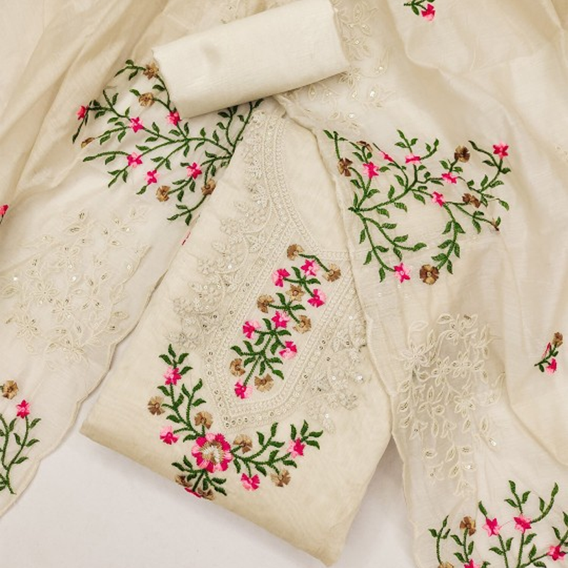 Embroidered Semi-Stitched Lehenga & Unstitched Blouse With Dupatta