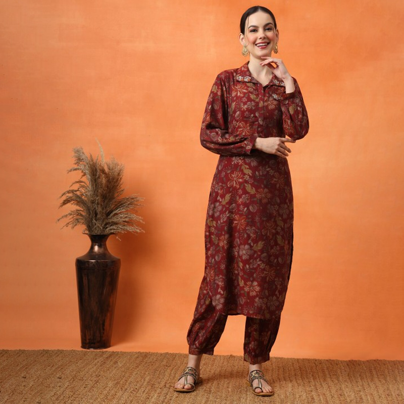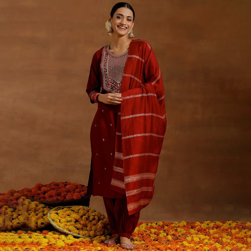 Women Red Ethnic Motifs Embroidered Pure Cotton Kurta