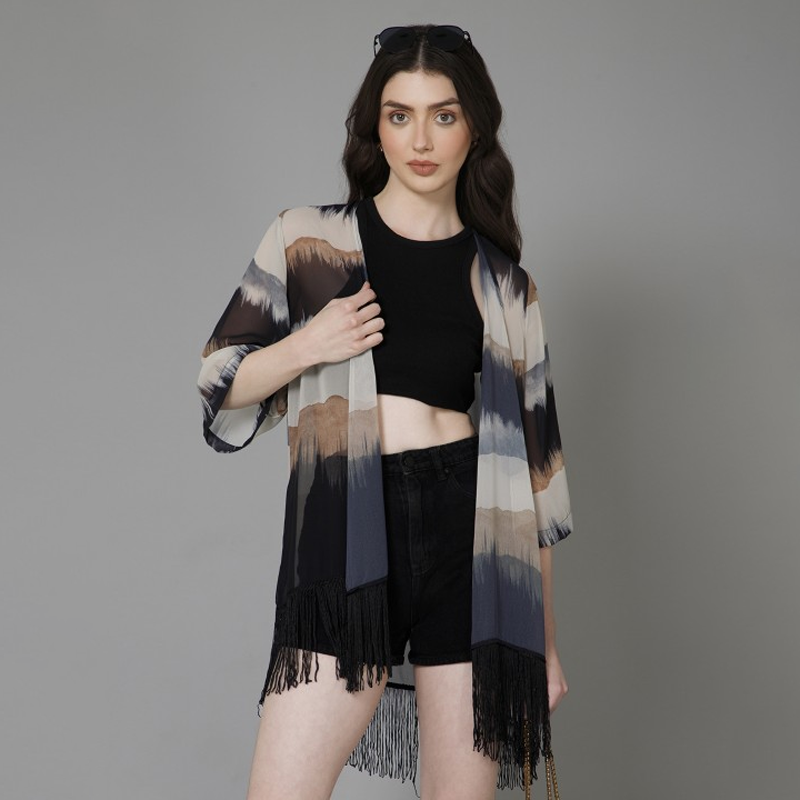 Abstract Printed Tasselled Shrug