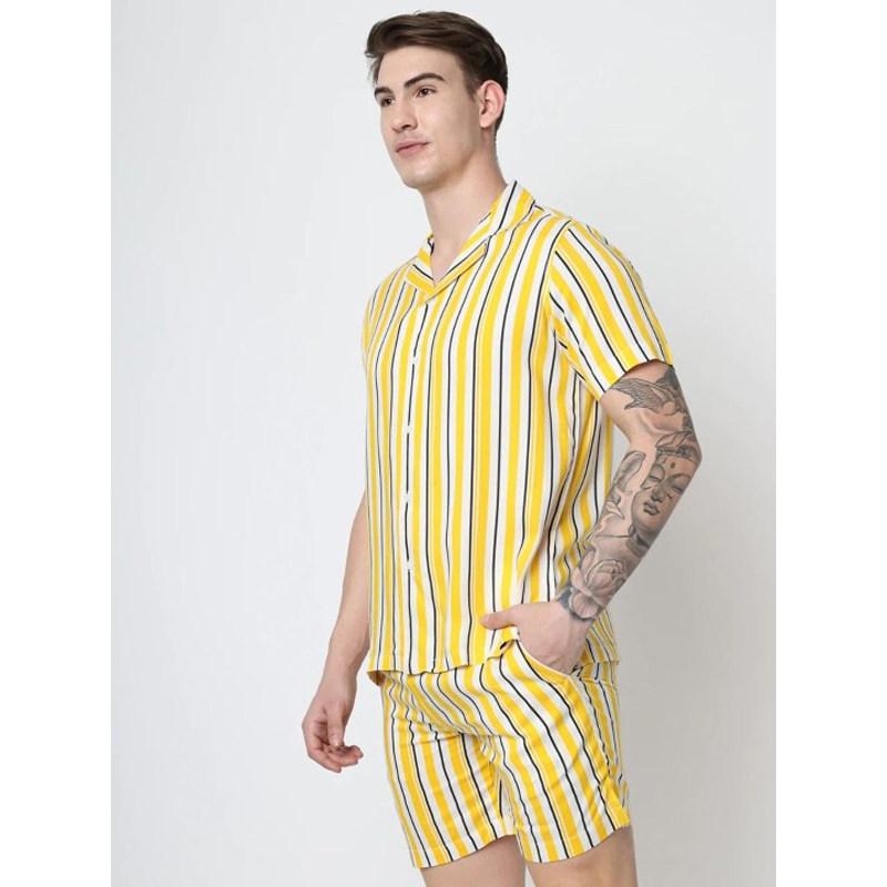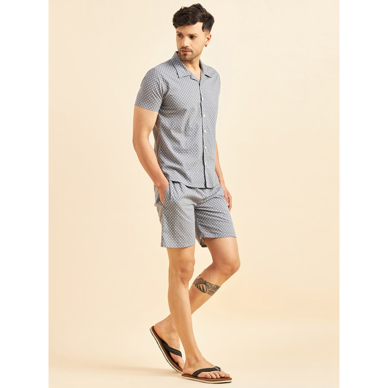 Unwind yourself in the vibrancy of this ultra-soft night suit. It is just what your body would need to unfurl in after a hard day's toil. Shirt Features Shirt collar Short sleeves Shorts Features Slip-on Size & Fit The model (height 6') is wearing a size M Material & Care Viscose rayon Dry clean