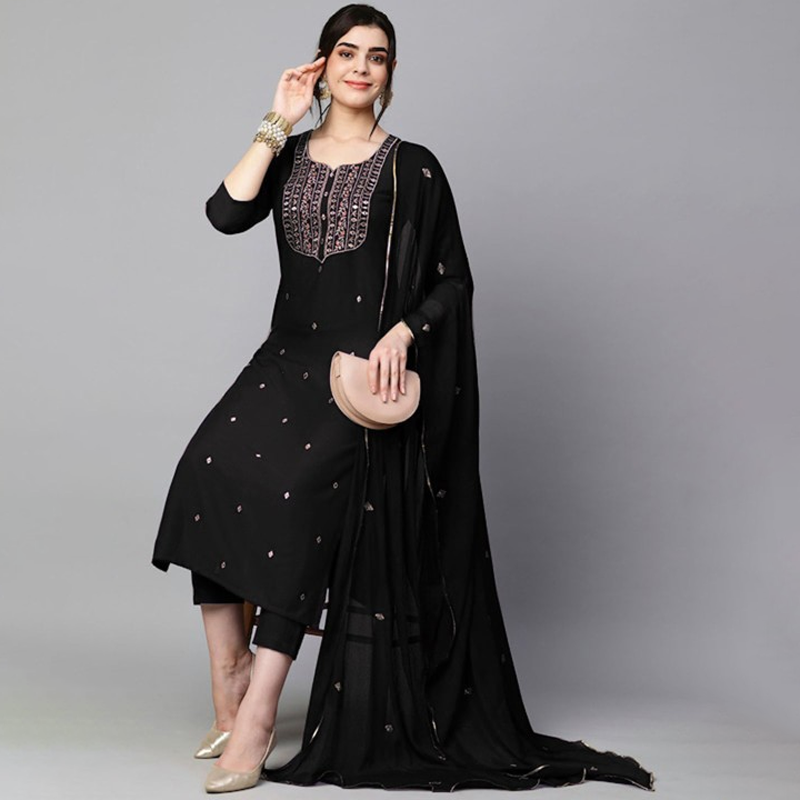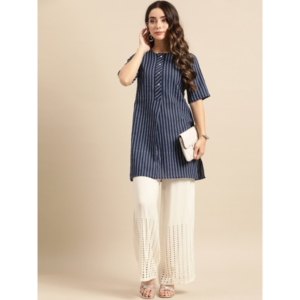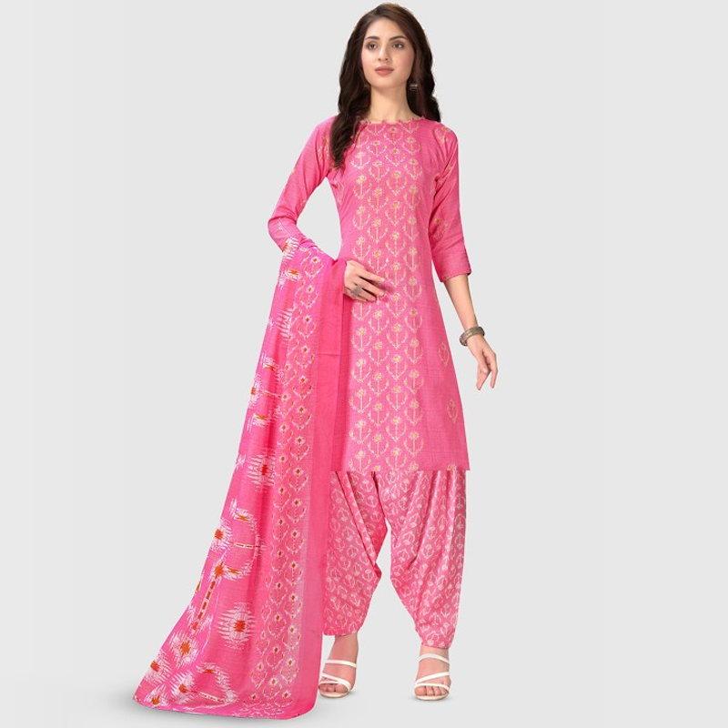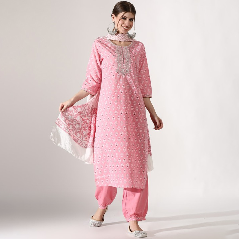 Geometric Printed Pure Cotton Straight Kurta With Salwar And Dupatta