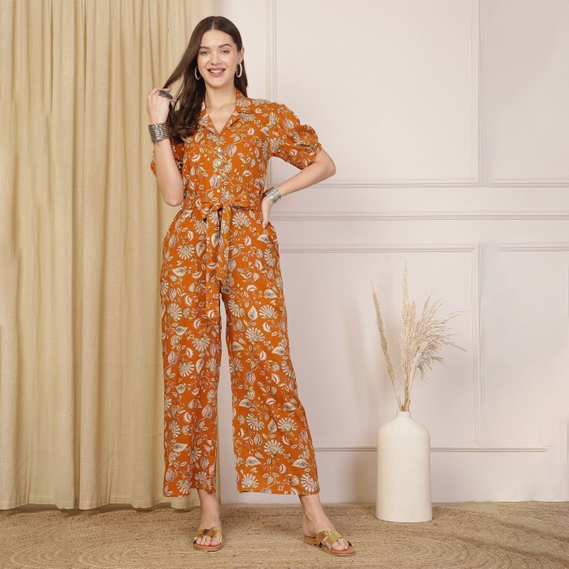 Brown saree Geometric printed saree with no border The saree comes with an unstitched blouse piece The blouse worn by the model might be for modelling purpose only. Check the image of the blouse piece to understand how the actual blouse piece looks like. Size & Fit : Length: 5.5 metres plus 0.8 metre blouse piece Width: 1.06 metres (approx.) Material & Care : Saree fabric:Pure cotton Blouse fabric:Pure cotton Hand wash
