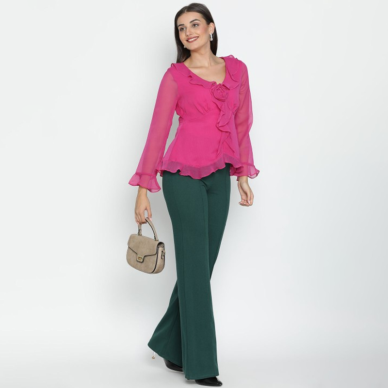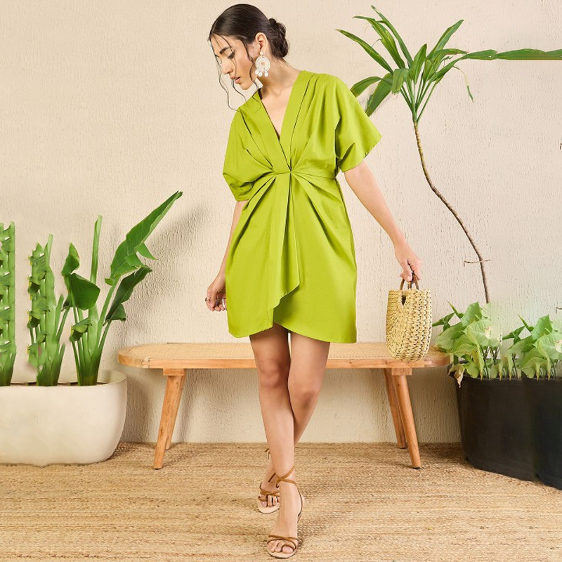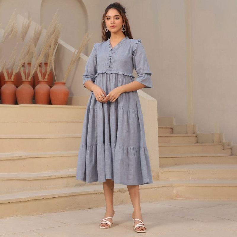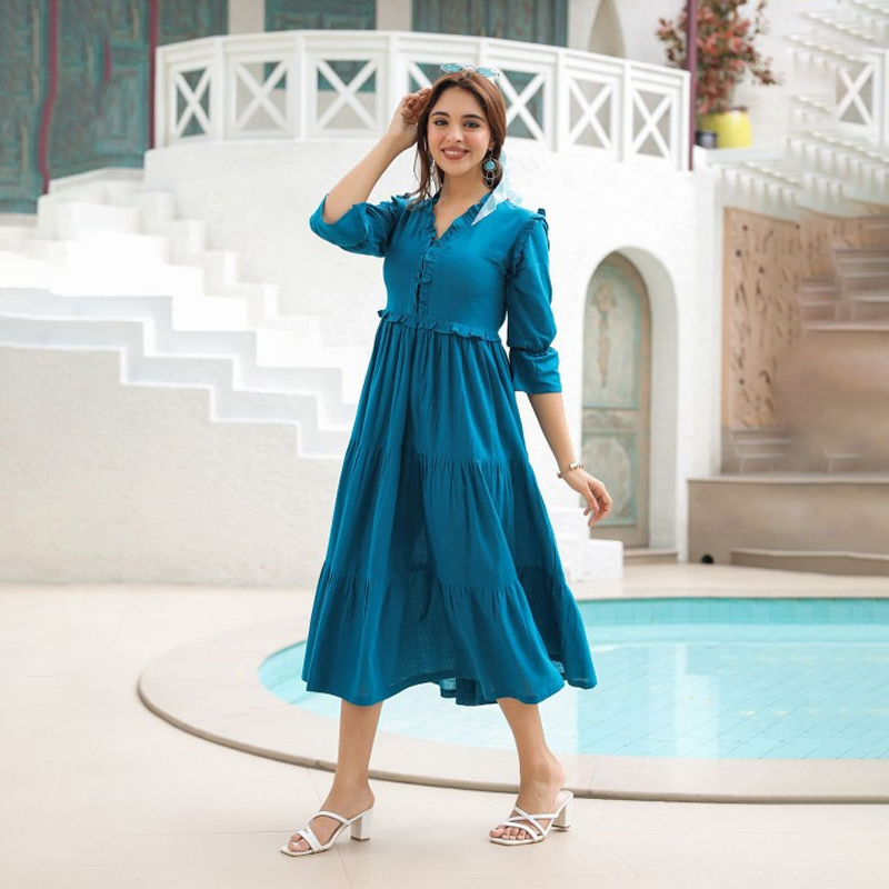 V-Neck Cuffed Sleeves Layered Maxi Dress