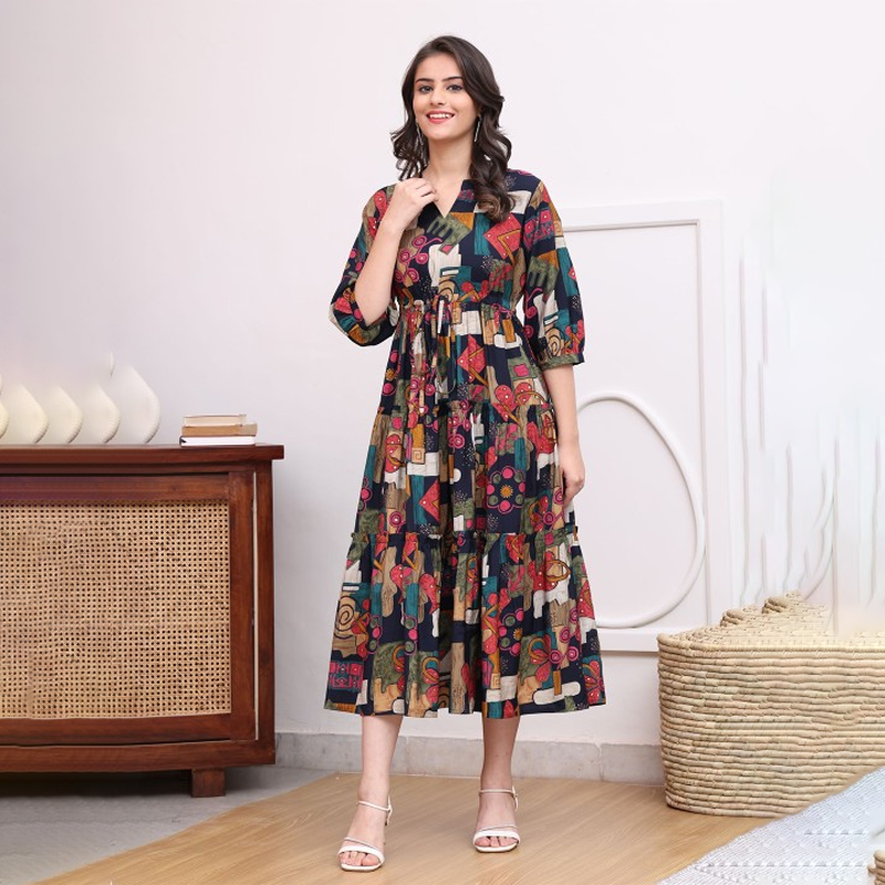 Ethnic Motifs Print Bell Sleeve Maxi Dress