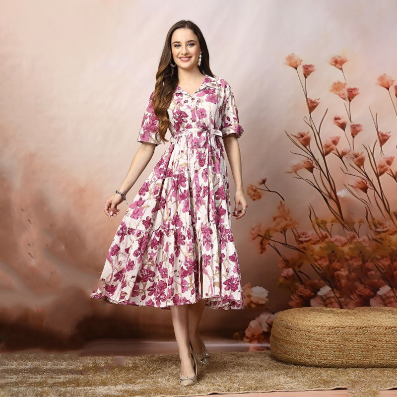 Floral Print Tie-Up Neck Puff Sleeve Maxi Dress