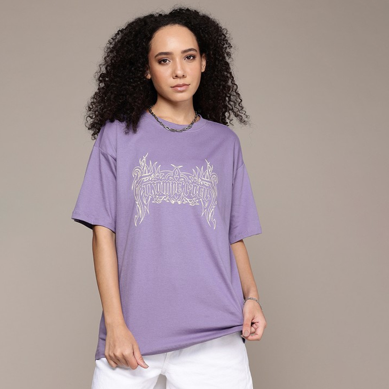 Women Graphic Printed Round Neck Cotton Oversized T-Shirt