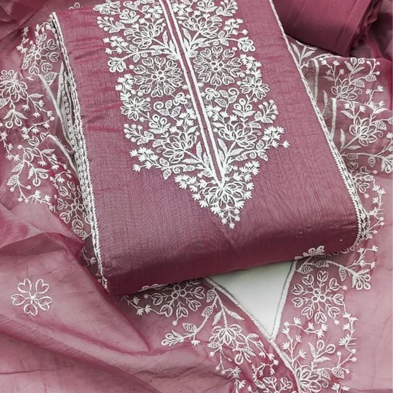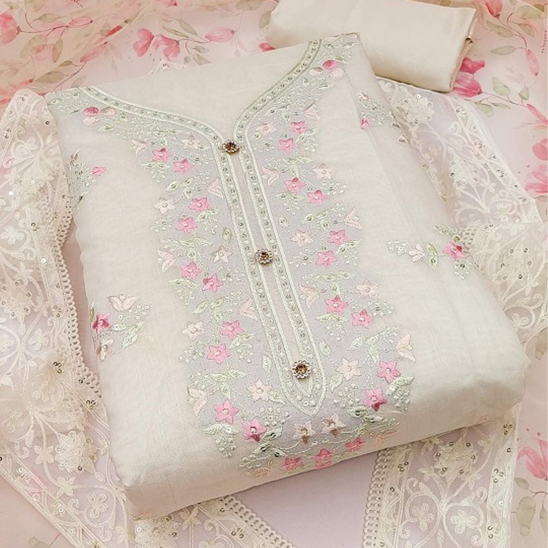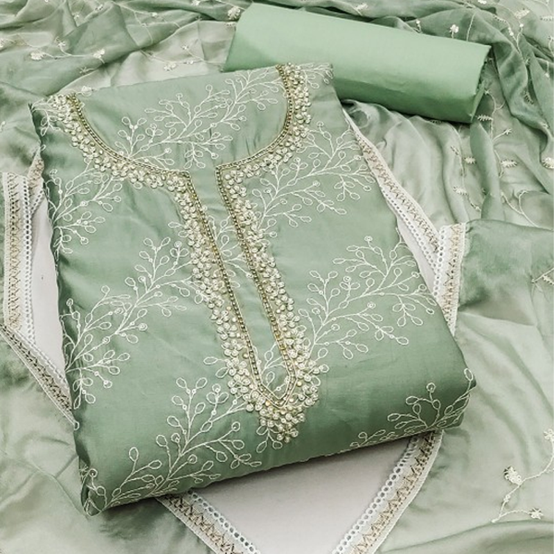 Embroidered Semi-Stitched Lehenga & Unstitched Blouse With Dupatta